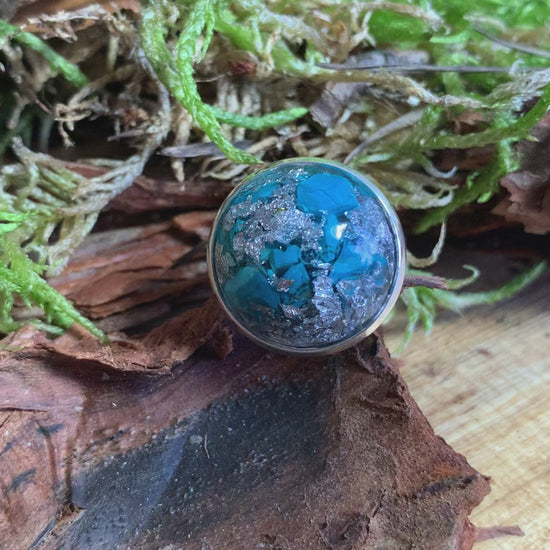 Orgonit - Ring mit Heilstein / Malacolla und Blattsilber