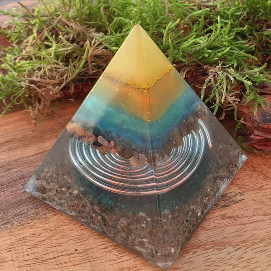 Orgonitpyramide Größe M, Spirale / Steinmischung / Höhe 10,5cm x 9,5cm